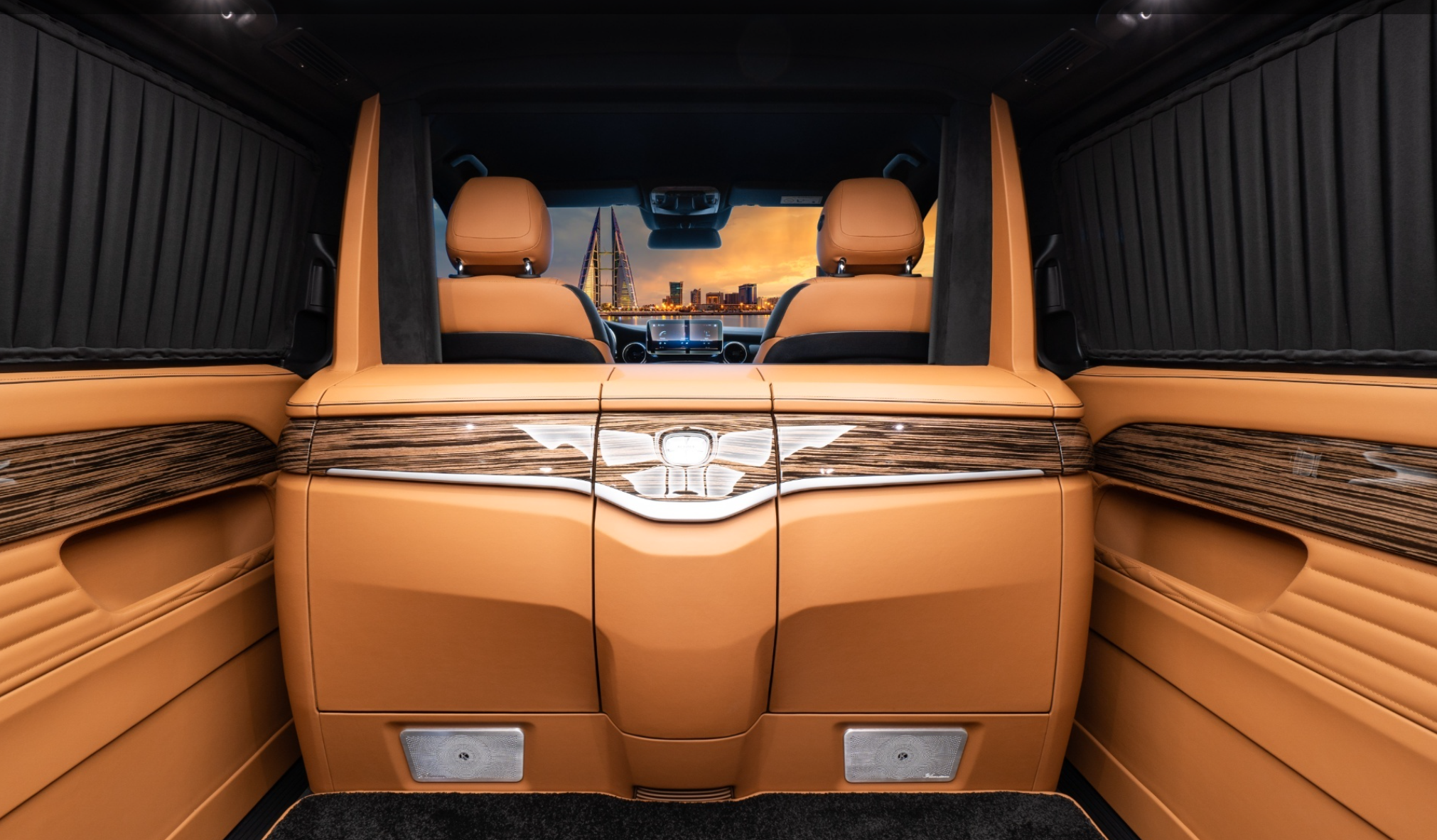 This is a car line with a private driver, an absolute combination between a mobihome and a limosine. A limousine has the luxury of a limousine, the comfort and convenience of a mobihome with TV, bed, kitchen, and high-class bathroom like a 5-star hotel. This is a classy product for the president's family